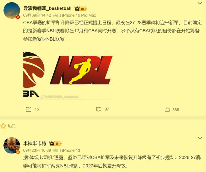 其实之前就有人爆料,说无论是第二届俱乐部邀请NBL前四名的球队参加,还是新赛季的NBL联赛和CBA联赛几乎同时开赛,都是为了2026-27赛季计划先扩军两支NBL球队,然后打算在2027年以后恢复升降级做准备。