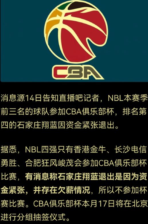 - CBA | 媒体人:石家庄翔蓝选择退出,仅三支NBL球队参加俱乐部杯