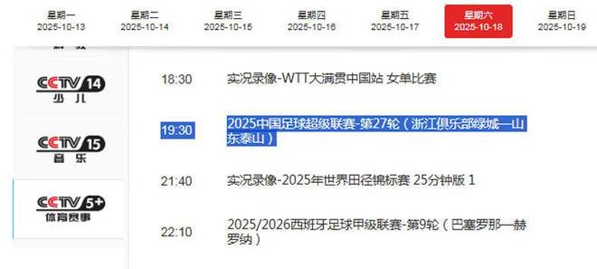 - 中超 | 央视直播浙江VS泰山!韩鹏倒数第二场米神PK瓦科王钰栋PK李小恒