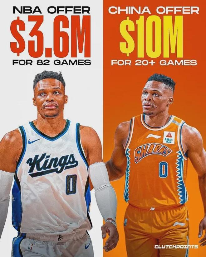 其实无论CBA或其他联赛开价多少,对于生涯至今总薪资收入高达3.46亿美元的威少来说都是九牛一毛,且人家当前最主要目标还是重返NBA甚至压根没有前往海外打球的想法。