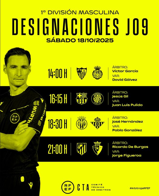- 西甲 | 西甲第9轮部分裁判选派:曼萨诺执法巴萨,德布尔戈斯吹马竞