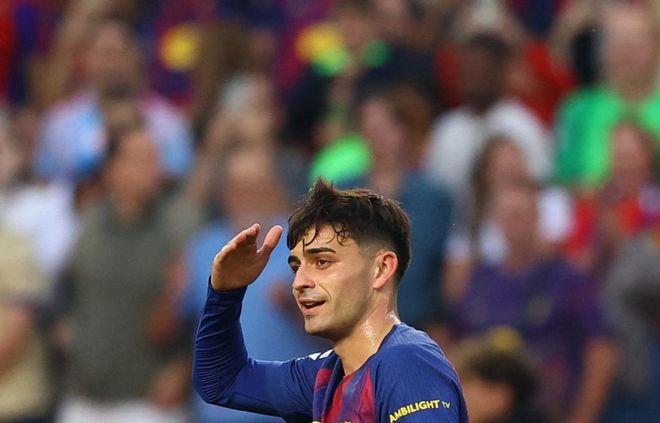 比赛刚刚开始不久,巴萨获得前场左侧的任意球机会。拉什福德主罚,他选择直接射门,结果被门将扑出。随后,亚马尔带球突入禁区右侧,兜射远角,结果踢偏了。第13分钟,巴萨进球了!佩德里在禁区右侧横向带球,随即低射远角,球进了!门将呆呆地站在原地,眼睁睁看着皮球入网。