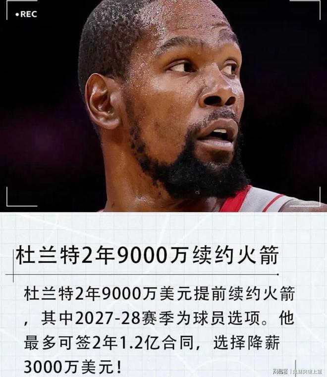 疯狂降薪!2年仅签9000万!杜兰特宣布提前续约火箭