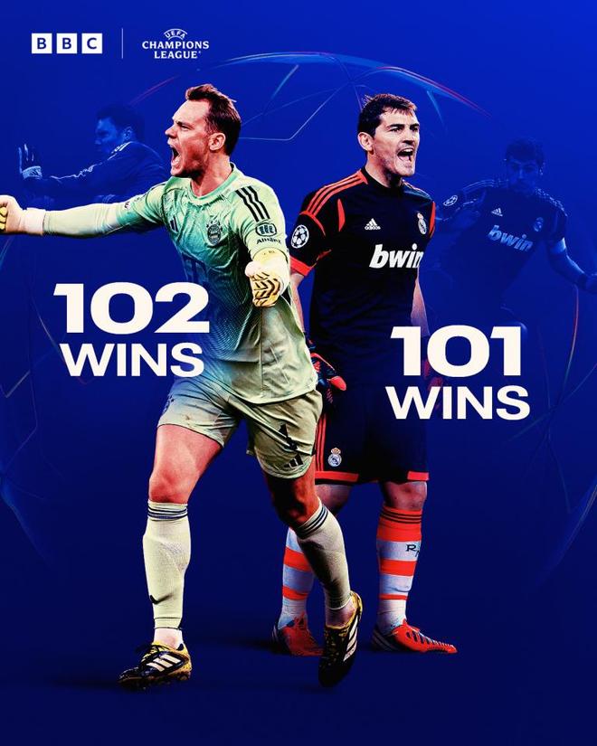 - 欧冠 | 诺伊尔欧冠胜场达102场,超越卡西利亚斯独占门将胜场榜首