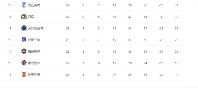 - 中超 | 中超最新积分榜:保级形势巨变,新鹏城基本上岸,倒数3队仍差2分