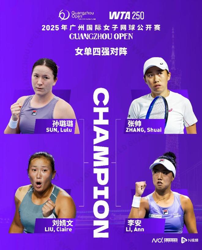 南都讯 记者汪雅云 10月24日,2025年广州国际女子网球公开赛结束了女单四分之一决赛的争夺,张帅和三位华裔球员孙璐璐、李安、刘婧文包揽四强。10月25日,本届广网将展开单双打半决赛的争夺。