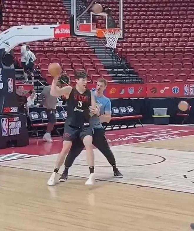 在今年NBA夏季联赛上,我们就经常能看到斯普利特在给杨瀚森当陪练,指点后者的内线技术动作。
