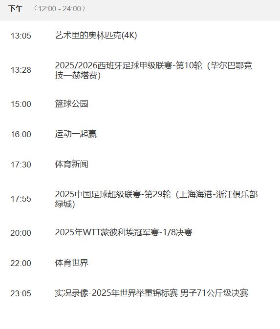 在刚结束的上一轮中,3支争冠球队意外都没取胜,可谓身心受挫,接下来,面对重要一战,除了技战术部署之外,他们还必须做好心理调整。这将考验主教练和俱乐部的管理能力,尤其是上海申花,上轮他们是主场作战,按说最有希望取胜,追平上海海港,结果还是自己掉了链子;而接下来,他们又要面对苦主甚至是克星深圳新鹏城,调整好心理尤为重要。央视每周节目单显示,央视体育频道(CCTV5)将从10月31日17:55开始,聚焦直播上海海港与浙江队的较量。这场比赛结束后,奥林匹克频道(CCTV16)则将从19:55开始,继续关注直播上海申花主场与深圳新鹏城的比赛。