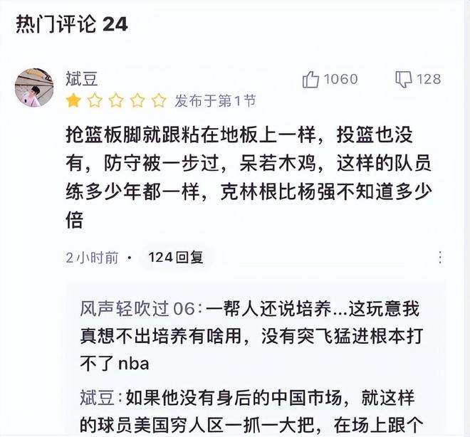 除了国外球迷对杨瀚森的不满外,国内球迷也对他的表现非常失望,给他评出了3.6分的低分。从表现来看,杨瀚森和NBA的差距是全方位的,速度慢是他的最大问题,也不够灵活,根本就跟不上比赛的节奏。另外在进攻端,杨瀚森显得有些疲软,这场比赛根本就不敢去内线,只会站在弧顶出手三分球,还没有能够命中;而在防守站位和对抗方面,杨瀚森的问题也非常明显。更让球迷无法接受的是,杨瀚森已经在美国训练了好几个月了,但却丝毫看不到他的进步,甚至连以前的策应和脚步也没有了,身体反而有些发福。如果杨瀚森不狠狠努力的话,基本上很难在NBA立足。