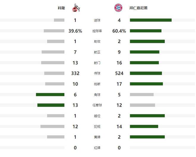 易边再战,拜仁在第52分钟完成一次成功的防守后,给迪亚斯创造出了超级大单刀的机会,可惜后者没有把握住机会,一脚踢飞帮助科隆完成了一脚解围,浪费了凯恩高质量的分球。第64分钟拜仁左侧角球开出,凯恩前点头球一蹭,再次攻破了科隆的球门,帮助拜仁将领先的优势扩大到了3-1,彻底终结了胜负的悬念,新赛季凯恩在14场比赛中,已经为南大王创造了25粒球(22粒进球和3次助攻),第72分钟奥利塞锦上添花,将全场比分定格为了4-1。