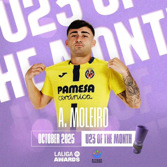 雷速体育10月30日讯 西甲联赛官方宣布,22岁的比利亚雷亚尔前锋莫里罗当选10月份联赛最佳U23球员。在10月份出场的3场西甲赛事中,莫里罗贡献了1球1助攻,帮助球队获得1胜1平1负,其中在对阵皇家贝蒂斯的比赛中,他单人贡献传射,可惜球队在最后时刻被安东尼连进两球绝平。现年22岁的莫里罗,出身于拉斯帕尔马斯青训,在今夏以1500万欧元转会费加盟黄潜,西甲10次出场其中7次首发,贡献了2球1助攻。