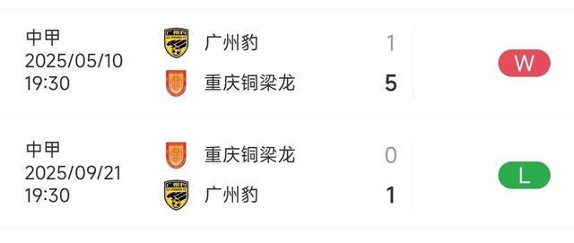 重庆铜梁龙主场与苏州东吴0:0战平。而在千里之外的青岛,广州豹毫无意外地以4:2的比分,在客场战胜青岛红狮。目前,铜梁龙和广州豹的积分同为57分,甚至连胜负场、净胜球等数据都全部一样。只是因为在双方胜负关系上,铜梁龙的净胜球占优而暂时排名第二。