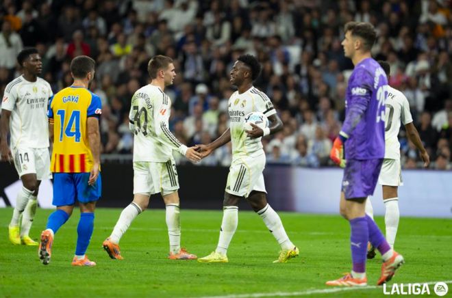 最终,总身价14亿欧元的皇马兵不血刃4-0完胜瓦伦西亚,银河战舰迎来各项赛事的6连胜。新赛季联赛11轮10胜1负,领先排名第二的比利亚雷亚尔7分。