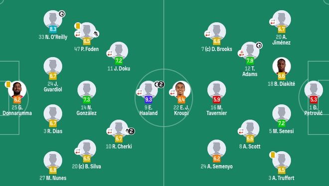 【出场阵容】曼城首发:25-多纳鲁马、27-努内斯、3-迪亚斯、24-格瓦迪奥尔、33-奥赖利、14-尼科、20-B席(90'21-努里)、47-福登(90'16-罗德里)、10-谢尔基(73'4-赖因德斯)、11-多库(73'26-萨维尼奥)、9-哈兰德(82'7-马尔穆什)替补未出场:1-特拉福德、5-斯通斯、6-阿克、82-刘易斯伯恩茅斯首发:1-彼得罗维奇、3-特吕费尔、5-塞内西、7-布鲁克斯(62'4-库克)、8-斯科特(73'10-克里斯蒂)、12-亚当斯(80'11-多克)、16-塔弗尼埃、18-迪亚基特、20-希门尼斯(62'19-克鲁伊维特)、22-克鲁皮(62'9-埃瓦尼尔森)、24-塞梅约替补未出场:40-丹尼斯、15-史密斯、44-米洛萨夫列维奇、17-阿德利