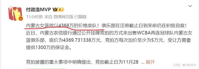 - CBA | 挂牌4300万100%股权转让!内蒙古女篮确定将退出新赛季WCBA