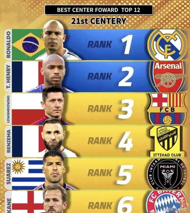 亨利的排名严重虚高了,至少在此榜单中他最多排进前五,莱万、本泽马、苏亚雷斯以及舍甫琴科的名字肯定都可以在他前面。虽然在英超时期他算是获得了巨大成功,但是和这几位顶级中锋相比较来看法国人是没有任何优势可言的。伊布的排名应该直接垫底,毕竟他四处流浪的后果就是没有取得过任何拿得出手的团队荣誉,当然其个人能力依旧值得肯定。就鲁尼、阿圭罗而言他均毫无优势,如果拿德罗巴和埃托奥来对比就更没有什么骄傲之处。