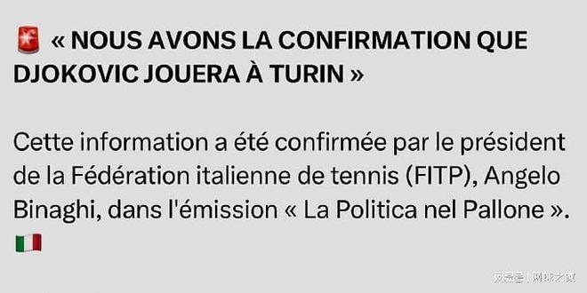 我们首先来关注一条有关德约科维奇的消息。北京时间昨天,意大利网协主席比纳吉在接受采访时表示,七冠王德约科维奇今年将重返都灵,参加年终总决赛。德约科维奇在美网之后曾表示,年终总决赛不在自己的计划赛程之内。本周,他将出战由自己的家族运营的ATP250雅典站的比赛,目前还没有对是否重返都灵做出任何表态。您认为他会去打年终总决赛吗?