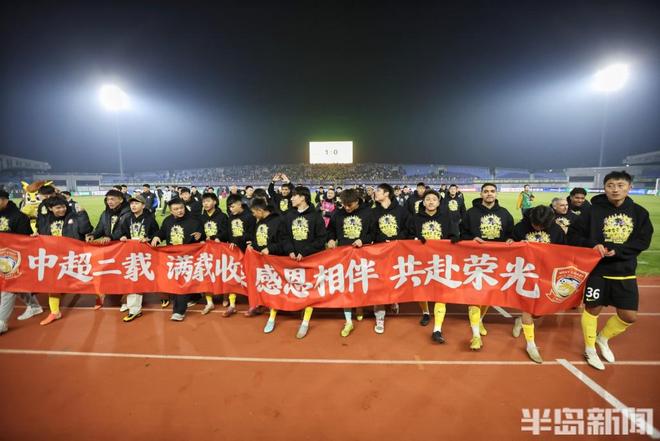 11月22日,2025赛季中超联赛收官战青岛西海岸主场1:0战胜长春亚泰。赛后,西海岸俱乐部为新任国足主帅邵佳一举行简短而隆重的送别仪式。从临危受命完成保级,到打造年轻化铁血之师,再到荣升国足主帅,一年半的时间邵佳一用完美答卷为西海岸生涯画上句点。仪式后,邵佳一绕场一周,感谢球迷对他的支持。