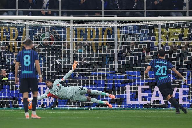 恰尔汗奥卢本有机会将功补过,然而第74分钟小图拉姆禁区内遭遇犯规制造的点球又被他葬送,米兰门神精准预判了恰尔汗奥卢的射门方向,将点球扑出。恰尔汗奥卢2021年从AC米兰离队、自由身加盟国米以来,在各项赛事主罚了29个点球,这是第一次被门将扑出点球。有意思的是,上赛季同样也是在第12轮联赛,国米对阵那不勒斯,当时恰尔汗奥卢的点球打在了立柱上。全场比赛国米控球高达64%,角球8比1,射门20比7,射正6比3,但屡屡错失机会让他们最终饮恨,此役失利后,国米在米兰德比遭遇连续6场不胜,且主场遭遇3连败。本轮过后,米兰积分达到25分,与那不勒斯同分,以净胜球优势排在积分榜第二位,国际米兰积24分排名联赛第四,意甲前五名之间最多只有3分差距,本赛季的联赛竞争趋于白热化。