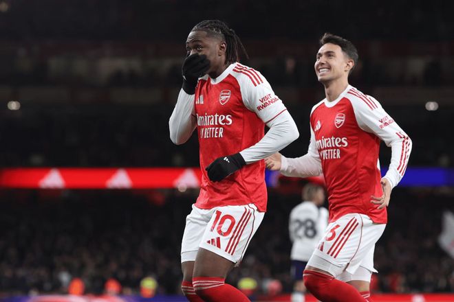 如此,对于枪手来说,即便要在本轮英超面临热刺的挑战,但这也是枪手在积分榜上扩大优势的绝佳机会。面对弗兰克的球队,阿森纳在开场阶段就展现出了不错的状态,上半场接梅里诺的挑传,特罗萨德杀入禁区转身后抽射破门,帮助枪手快速拿到了比赛的主动权。此后,阿森纳攻势不减,利用前场逼抢,球队快速形成了二次进攻,最终由埃泽完成了破门。易边再战,埃泽再一次在禁区弧顶觅得良机,这一次他选择了逆足射门,打得对手门将维卡里奥毫无办法。