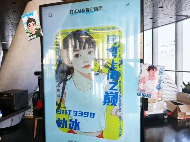 赛事终点特设了可以根据选手照片生成AI自画像的摊位,为大家定格更多来自上海之巅的独家回忆。