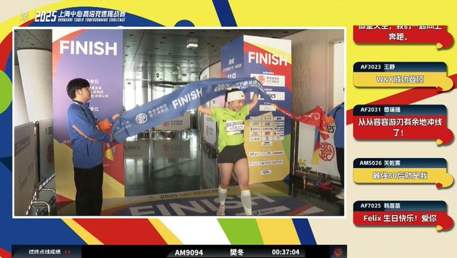 此外,与22日激烈的个人全程赛不同,上海中心还在23日举行乐个人欢乐跑组别的比赛,旨在让更多普通人体验到高塔竞速这项运动带来的快乐,倡导更健康的生活方式,让更多人参与并感受垂直奔跑的独特魅力。个人欢乐跑组别从2019年设立至今,深受广大参与者的喜爱。在此项目中,参赛者只需从1楼跑到22楼,完赛后便可转乘电梯直达119层上海之巅观光厅,享受浦江两岸城市美景。