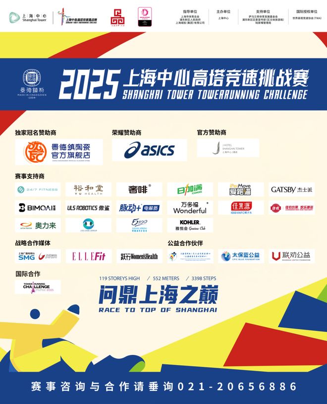 作为全球高塔竞速挑战赛中规模最大、积分最高、办赛大楼最高的顶级赛事,上海中心高塔竞速挑战赛的119层垂直赛道、552米高度和3398级台阶,对每一位参赛者都是一场极限挑战!