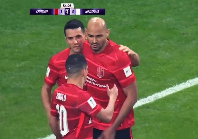 第54分钟,周定洋禁区内持球被撞倒,VAR介入,裁判给了点球,费利佩主罚点球冷静施射,门将判断对了方向,但球速太快,无力阻拦皮球入网,成都蓉城主场1-0领先。