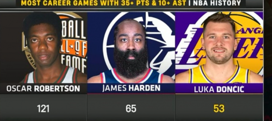 而在全场数据方面,东契奇也是在狂刷纪录:东契奇(26岁271天)成为湖人队史最年轻单场至少40分10助攻5三分的球员;东契奇生涯已53次至少35分10助,位列历史第三;东契奇湖人生涯7次40+,超越魔术师位列湖人队史第十;