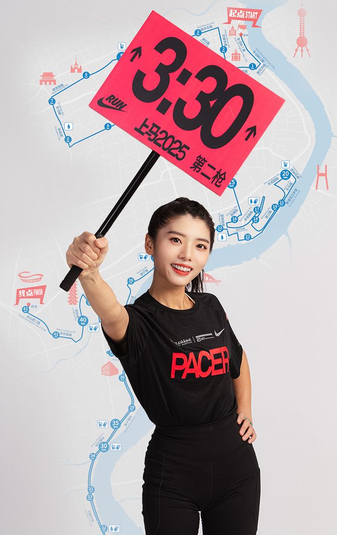 她2023年4月开始参加半马比赛,10月以314完成首场全马,2024年在衡水湖马拉松以312实现全马PB,去年参加了上海马拉松。“感觉上马赛事的氛围很好,一路上被沿途耐克的各种标语感染,跑完之后,就希望自己有机会再次体验上马”,结果在今年没中签之后,她在上海马拉松的官方微信公众号看到了招募Pacer的消息,觉得可以一试。