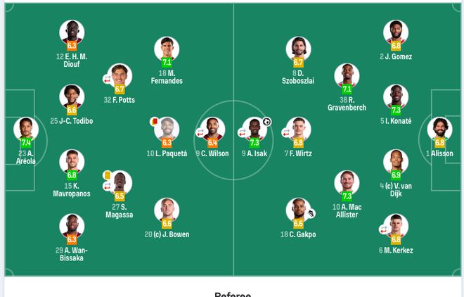 - 英超 | 利物浦20终结三连败!升至英超第八,伊萨克轰首球,加克波传射