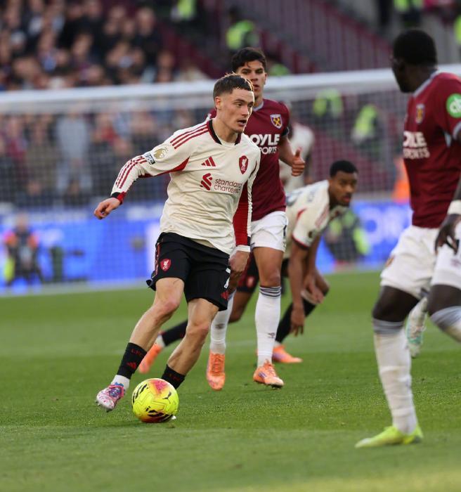 帅位岌岌可危的斯洛特,此战终于将状态断崖式下滑的萨拉赫摁在了替补席,比赛开打之后,利物浦就反客为主在场上压制住了西汉姆联队,第16分钟维尔茨左路下底传中,可惜伊萨克包抄不到位,让铁锤帮后卫将皮球踢出了底线,2分钟之后,西汉姆联队形成反击,威尔逊左路的打门,被科纳特伸脚挡出,化解了险情。第21分钟伊萨克在西汉姆联门前完成了一记精彩的侧钩打门,不过被主队门将阿雷奥拉神扑化解,9分钟之后,麦卡利斯特大禁区前沿开炮,皮球被防守球员挡了一下后,被铁锤帮门将轻松没收,第39分钟非常活跃的维尔茨,接到加克波禁区内的回做球后,直接不停球推射打远角,但依旧无法攻破状态神勇阿雷奥拉的十指关。