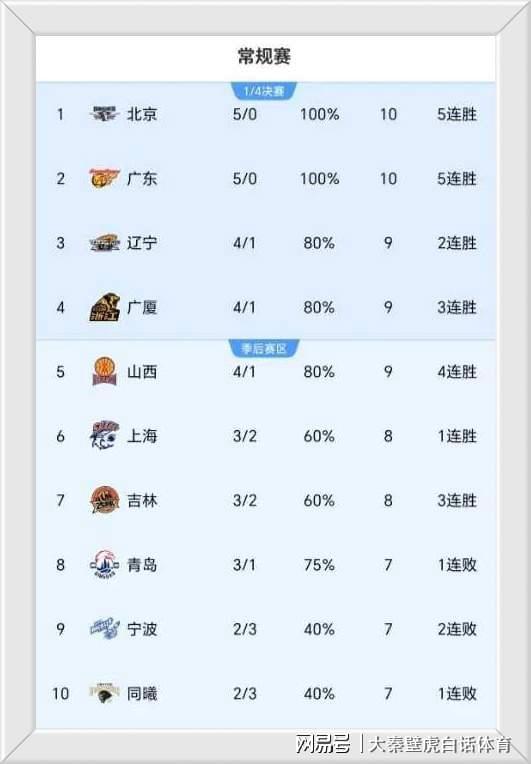 - CBA | CBA排行榜更新,广东5连胜再夺前2,辽篮稳居前3,争冠格局显现