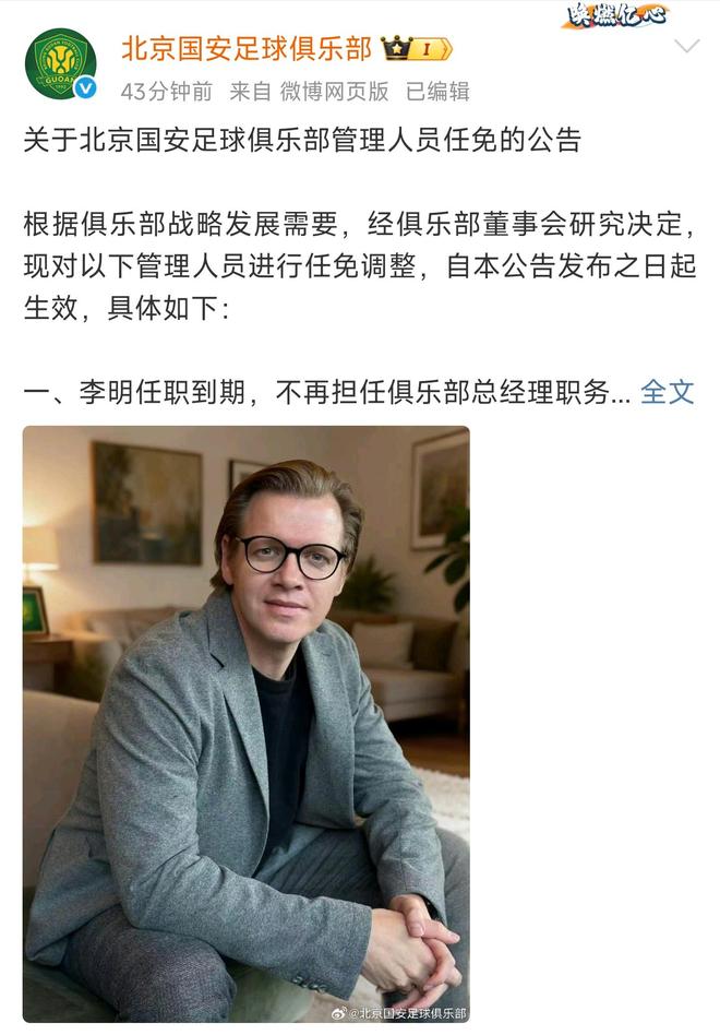 - 中超 | 上午10点官宣!李明不再担任北京国安总经理,德国人马永明接班