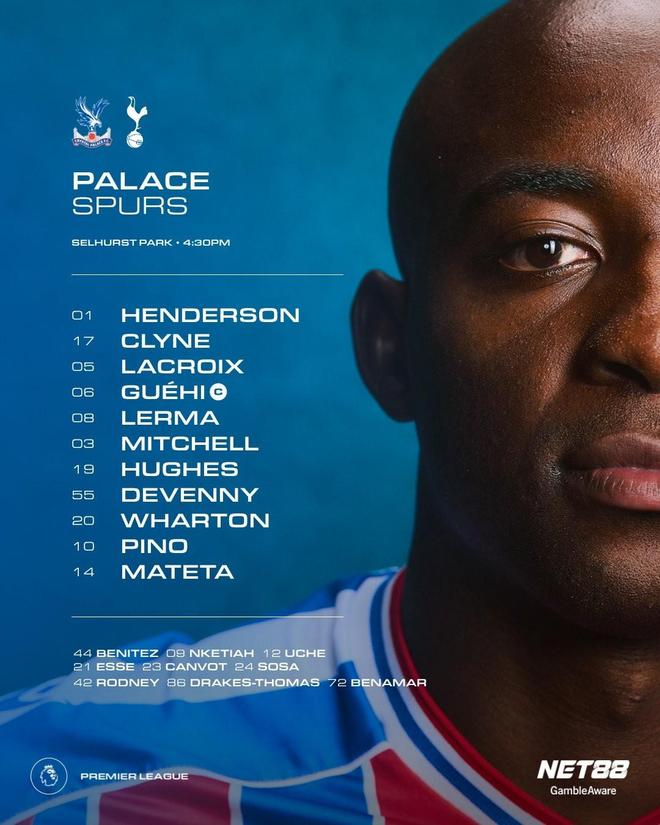 热刺首发:1-维卡里奥、24-斯彭斯、4-丹索、37-范德芬、23-波罗、14-格雷、30-本坦库尔、15-贝里瓦尔、20-库杜斯、9-里沙利松、39-穆阿尼替补:31-金斯基、3-德拉古辛、6-帕利尼亚、11-特尔、22-布伦南-约翰逊、25-高井幸大、28-奥多贝尔、33-本-戴维斯、44-斯卡利特水晶宫首发:1-迪恩-亨德森、8-莱尔马、5-拉克鲁瓦、6-格伊、3-米切尔、20-亚当-沃顿、19-威尔-休斯、17-克莱因、10-耶雷米-皮诺、55-德文尼、14-马特塔替补:44-瓦尔特-贝尼特斯、9-恩凯蒂亚、12-克里桑图斯-乌切、21-埃塞、23-康沃、24-索萨、42-罗德尼、72-贝纳马尔、86-德拉克斯-托马斯