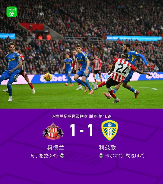 - 英超 | 桑德兰11利兹联,阿丁格拉破门,勒温扳平