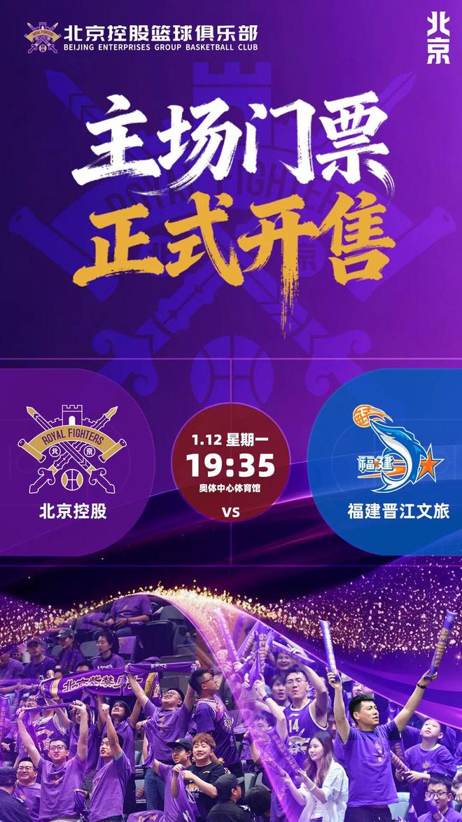 【票务公告】北控男篮对阵福建男篮主场门票将于1月5日1218开售