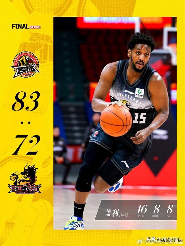 本场比赛,吉林6人得分上双,盖利得到了16分8篮板8助攻的全面数据,江苏双外援贾尔斯和亨特无法全场比赛保持高效的比赛,吉林最终守住主场优势。