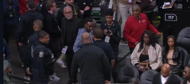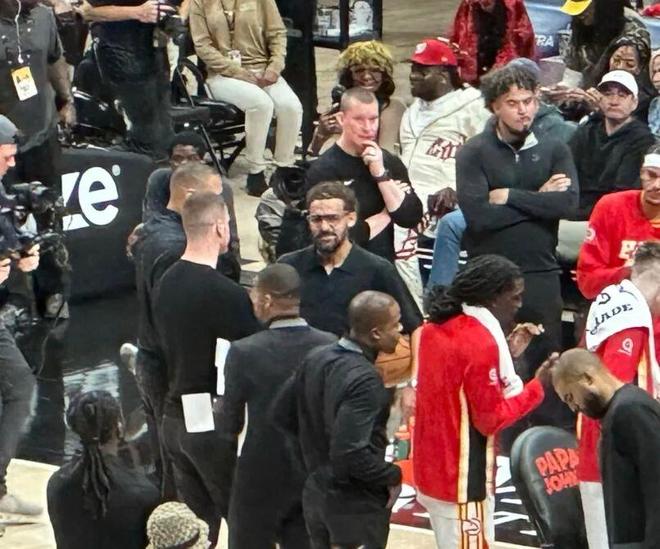 他还能保持足够的职业性,坐在独行侠的替补席,看一节比赛...