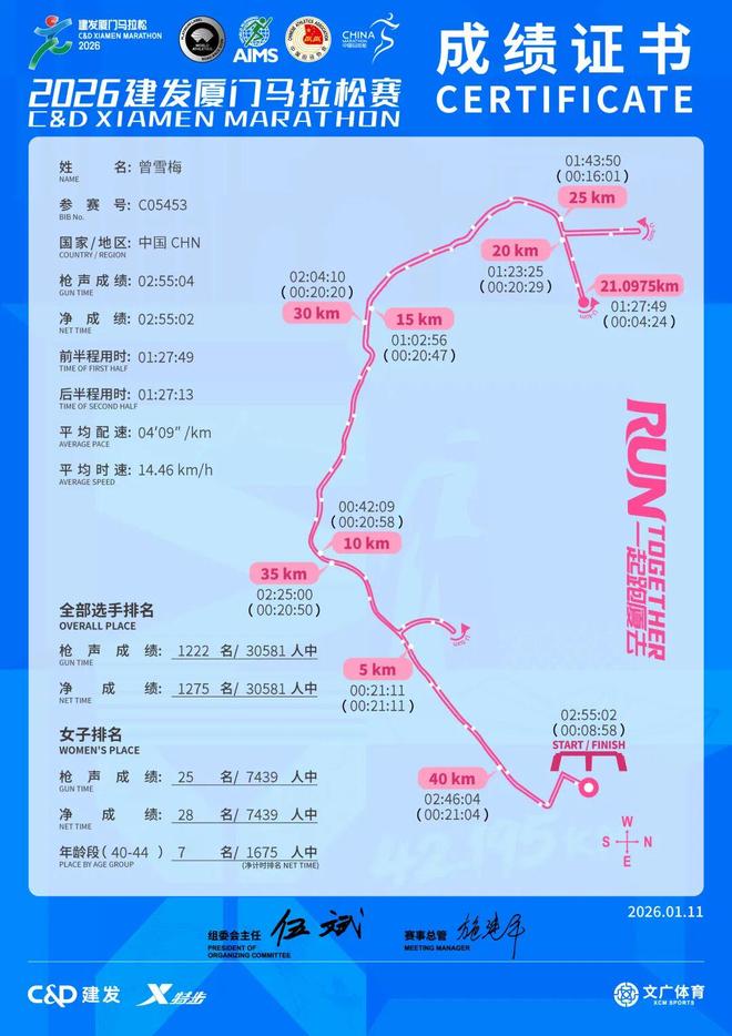 她开始加速。对大多数跑者而言,风是物理意义上的阻力,是赛道上不可见的墙。但对曾雪梅来说,风是她生活的常态。在30公里后的“撞墙期”,在逆风的海岸线上,她把配速强行提到了4分04秒、4分03秒。