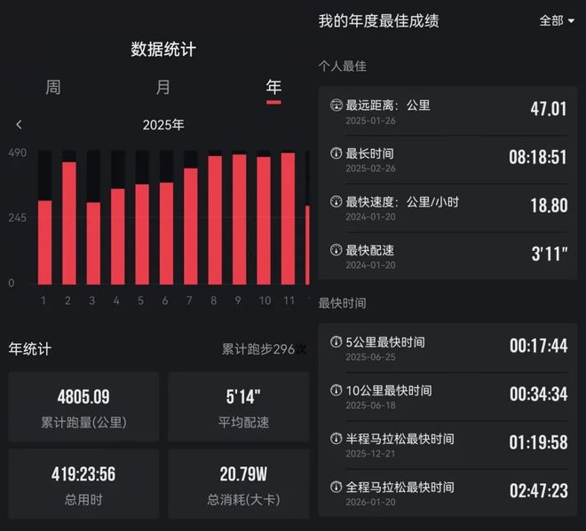 曾雪梅在2025年的跑量接近5000公里