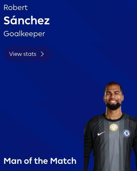 6次扑救,罗伯特桑切斯当选切尔西vs小蜜蜂全场最佳球员