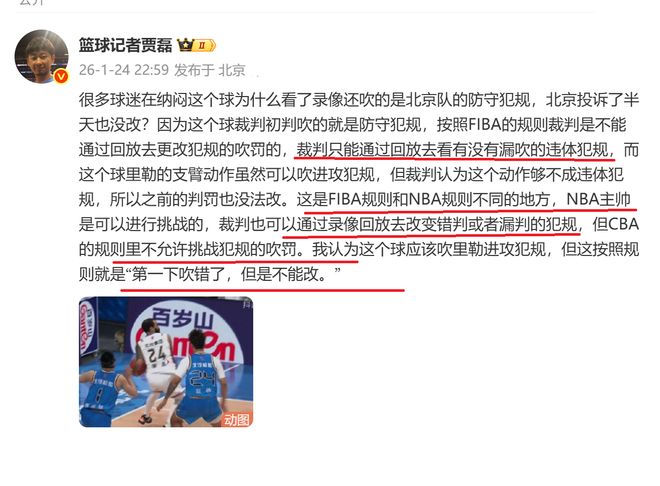 在北京队申诉下,阎军看了录像回放,但是,还是吹赵睿犯规?为何呢?明明是里勒推人犯规,对于这个问题,CBA名记贾磊也是进行了解答!